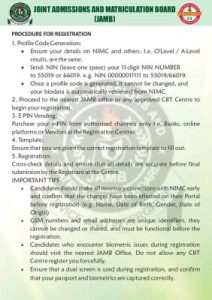 The Joint Admissions and Matriculation Board (JAMB) has issued an official notice outlining the procedures and important tips for candidates registering for the 2026 Unified Tertiary Matriculation Examination (UTME).